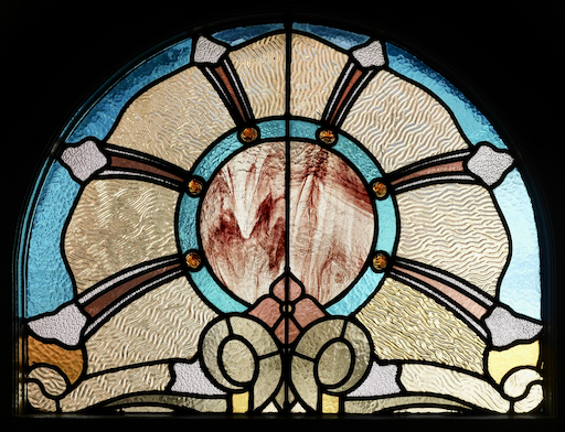 Im vierten Stock ergänzen drei Rundbogenfenster aus grünen Blättern den fragilen Garten. Im Erdgeschoss sind zusätzlich zwei kleine quadratische Fenster mit Mohnblüten zu finden. Der Schlafmohn steht im Jugendstil für eine Flucht aus der Realität, seine halluzinogene Wirkung wird romantisiert. Der bzw. die Glasmaler können auch in den Bauakten nicht ermittelt werden.